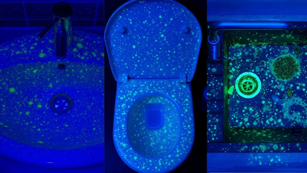 ✅ Système de détection UV – le véritable atout : révèle ce que vos yeux ne peuvent pas voir — éclaboussures invisibles autour des toilettes, bactéries cachées sur des surfaces “propres”, moisissures dans les joints et contamination sur des objets du quotidien comme les porte-brosses à dents. Pour la première fois, vous pouvez réellement voir ce que vous combattez — c’est comme avoir une vision nocturne pour la saleté.