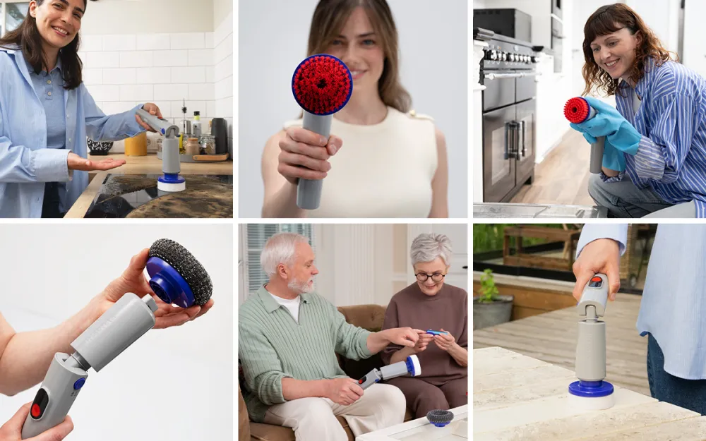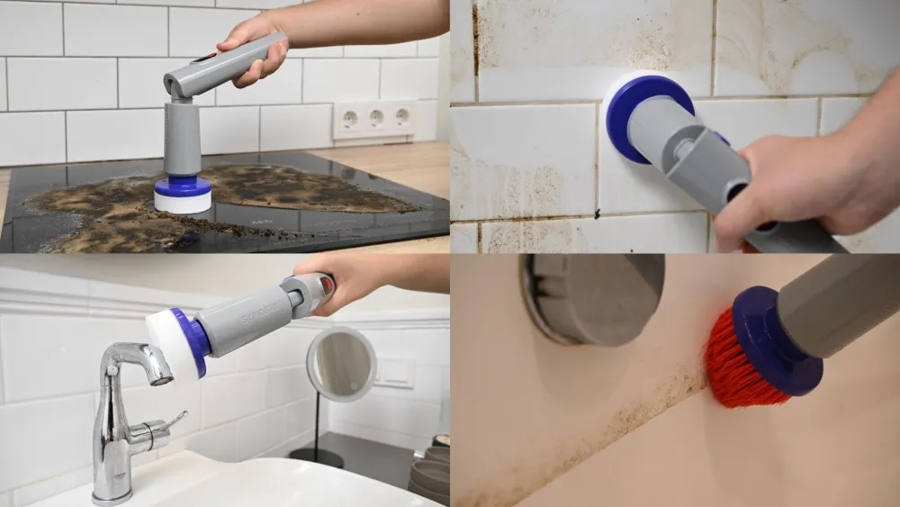 ✅ Système d’attache rapide : inclut plusieurs têtes de brosses spécialisées pour chaque tâche. Chaque paire est codée par couleur afin de ne jamais confondre les outils de la salle de bain avec ceux de la cuisine. Les poils fermes s’attaquent aux joints et au carrelage, les têtes souples s’occupent des surfaces délicates, les brosses d’angle atteignent les recoins, et les brosses plates couvrent de grandes zones rapidement.